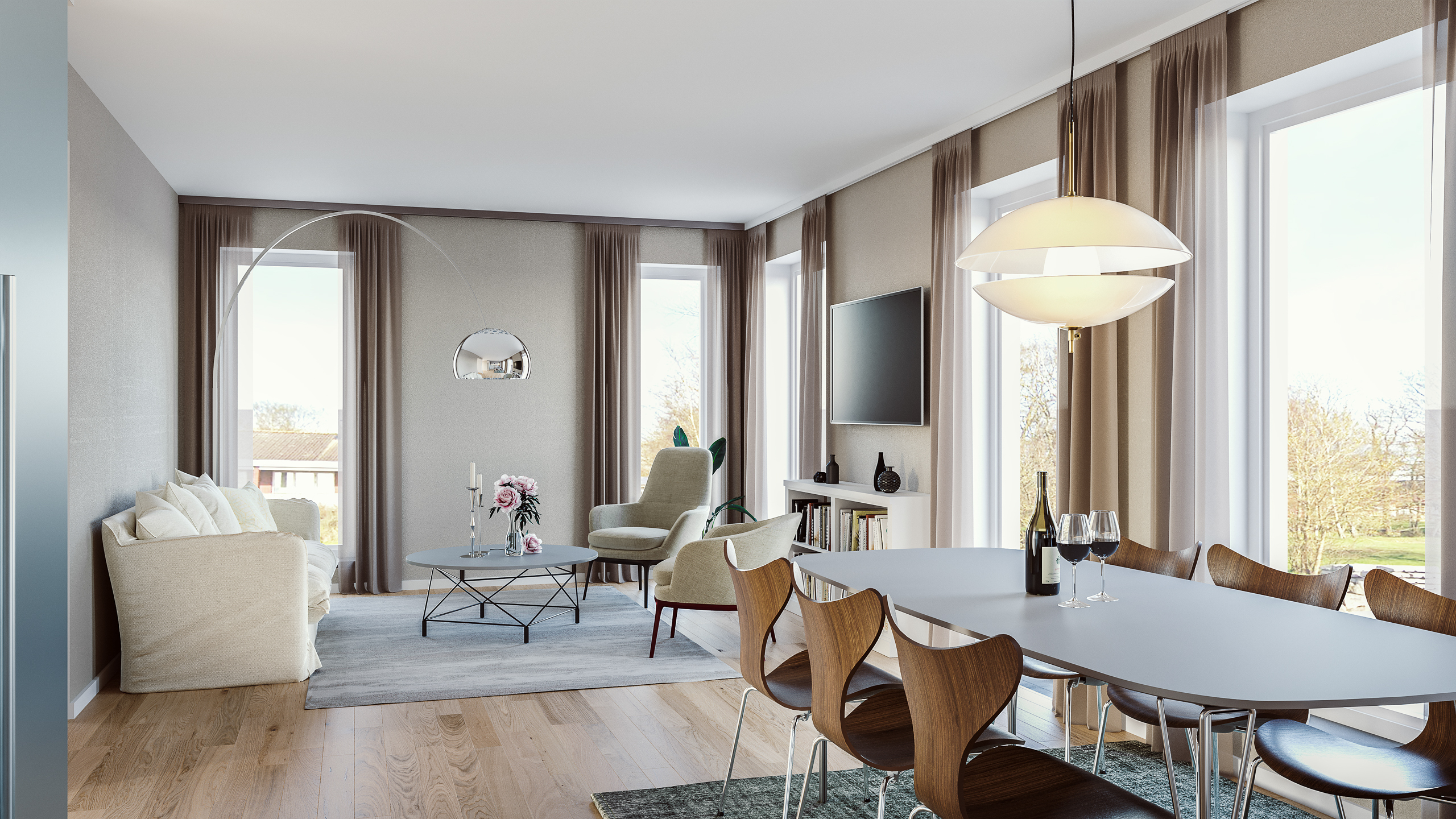 Anne Lundsgård är ett boende i bostadsrättsform där du som boende får möjligheten att bo i en liten välmående förening med ett gemensamt engagemang med grannarna vilket skapar gemenskap och trygghet. Bostäderna är välplanerade med stora fönster och fina rumssamband. Du får en bostad av hög kvalitet och gedigna material som håller under lång tid framöver. Samtliga fönster, förutom fönsterna på entrésidan, har en höjd på total 2,2 m och når ner till ca. 20 cm från golv. Fönsterbänkar av kalksten skapar en känsla av lyx. Gavellägenheterna har dessutom utsikt åt tre olika väderstreck.